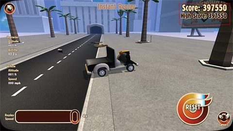 选择正确的路线至关重要。在直线碰撞段,要尽量选择直线路径来触发场景中的陷阱;而在高速公路的交接处,玩家则需根据实际情况选择行驶方向,是直行还是转弯,并且要尽可能多地撞击其他车辆——毕竟障碍物提供的分数有限,撞车才是获取高分的关键。