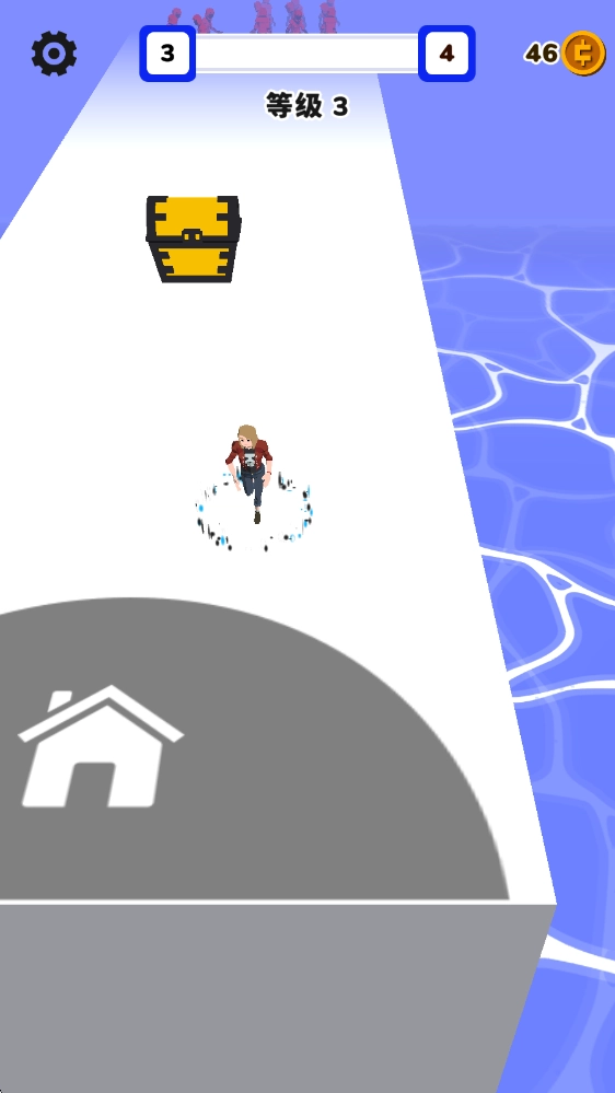 打开宝箱并拾取金币后,沿着带有箭头标识的走廊前行就能进入下一关。