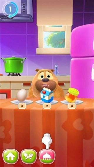 在《熊大熊二》游戏的开局阶段,你能够挑选熊大或者熊二作为自己的伙伴,一旦选定,你就成了它的主人,得用心照料它。游戏界面的底部设有五个选项,分别是客厅、餐厅、卫生间、卧室和熊熊乐园。通过前四个选项的状态变化,玩家能知晓熊大熊二的情况,例如卫生间选项的数值降低,意味着熊大熊二需要去上厕所;餐厅数值下降,说明它们饿了要吃东西;卧室数值减少,则表示它们需要休息睡觉了。