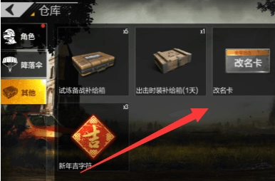 购买改名卡后返回游戏主界面,点击下方的仓库入口,在仓库左侧的“其他”分类里找到改名卡道具。