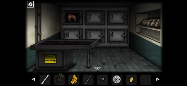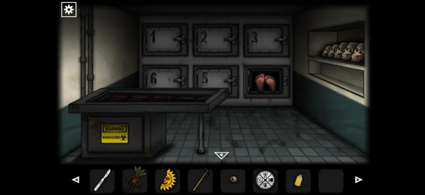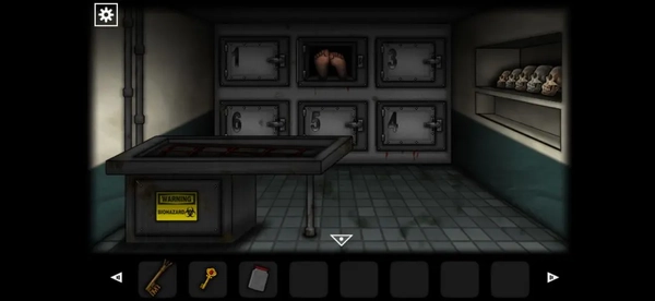 前往左侧的停尸柜区域,先随意点击操作让脚部显现出来,接着依据出现的数字去点击对应的柜子,这样就能获取钥匙了。