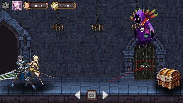 回来之后,刚才碰到的角色加入了我们的战队,接着探索地牢吧!