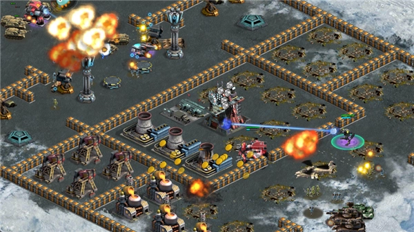 在战术选择上,步兵应作为优先考量的单位,其中步兵的升级更是重中之重——毕竟步兵不仅生产效率高,还具备较远的攻击射程。其次可以部署恐怖份子,利用其特性对敌方集群目标造成大规模杀伤。空中单位方面,夜莺直升机是首选;而战车类单位由于占用人口较多,暂不纳入建造计划。