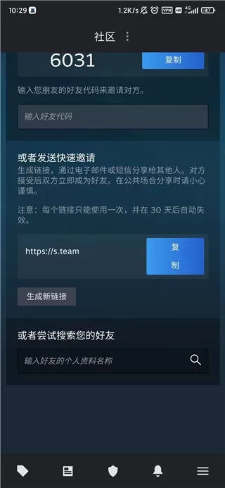 4、如果还是不会可以直接看到快速邀请,这里有一个链接,用户可以通过点击链接直接添加好友。