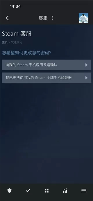 3、在这里就可以通过客服发送代码更改自己的Steam密码了。