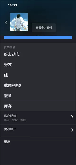 2、然后敬业自己的资料界面,下滑找到“账户安全”。