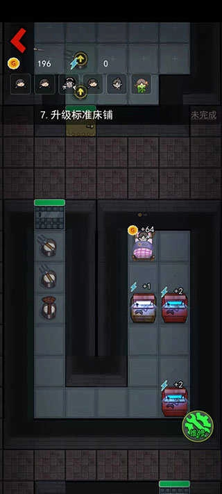 游戏开始时可以随意选择一个宿舍,不用在意倒计时,在鬼魂出现前系统会固定发放30金币。进入房间后,要第一时间把床升级到2级,同时建造2级的铁门。
