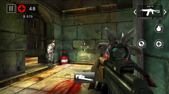 它的防御力相当出色,生命值也比较高,得用手雷来攻击才行。一旦僵尸也就是对方蹲下身,其背部的弱点就会暴露出来,这时就能用武器进行快速射击了。