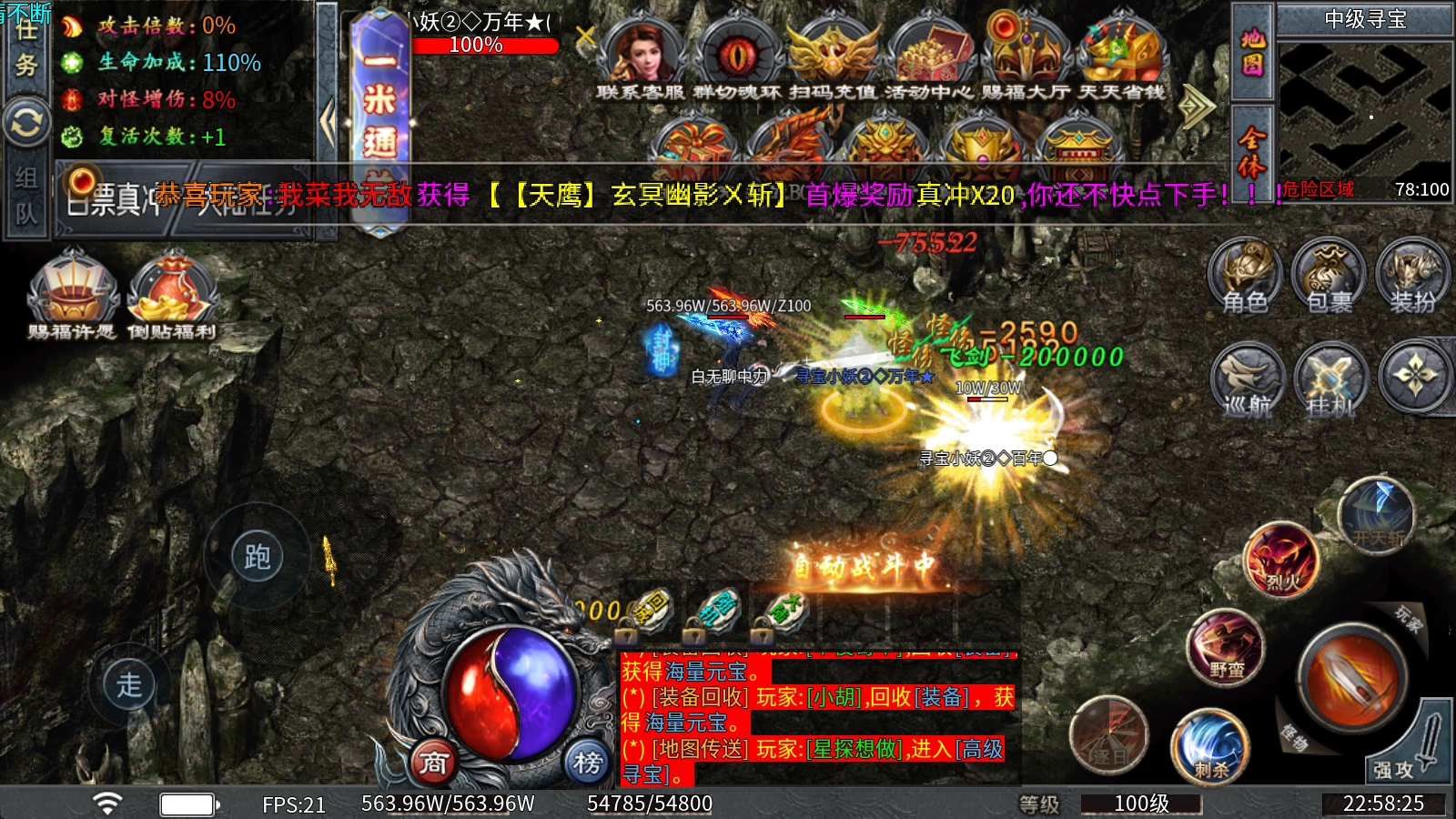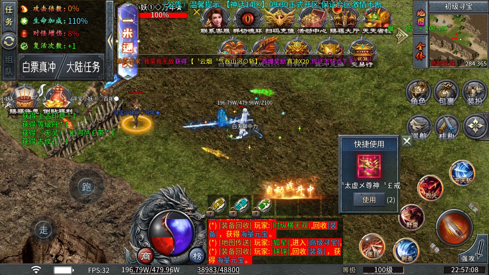 上线即赠本服真实充值额度,搭配自动挂机、自动回收、自动拾取等实用福利,助你轻松畅快地开启开荒发育之旅,全程毫无压力。