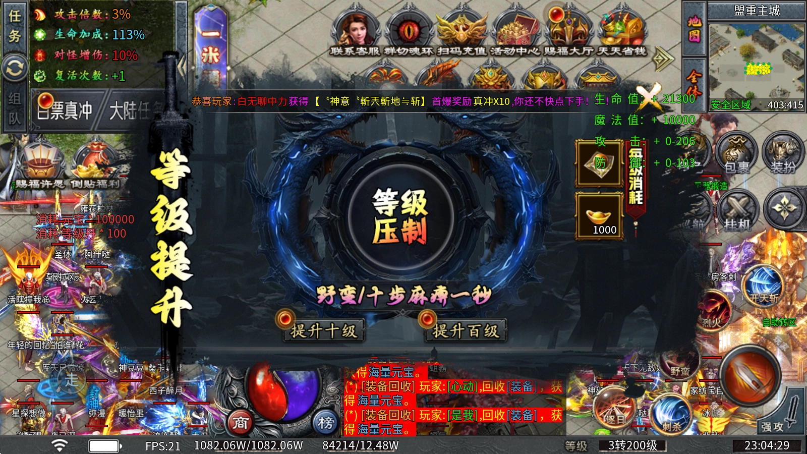 等级提升:消耗等级丹和元宝即可突破等级上限,并且等级够高还能拥有等级压制。
