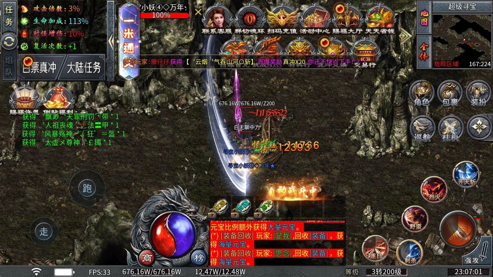 海量世界BOSS可以自由的去挑战,并且定时刷新,击败即有几率获得极品装备、材料,抢到就是赚到。