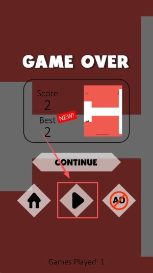 游戏结束规则:当界面出现“GAME OVER”提示时,可选择点击“CONTINUE”按钮继续游戏,或者通过观看广告(AD)来复活角色。