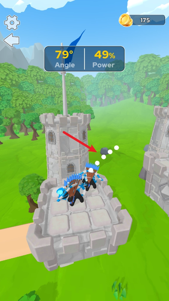 关卡中,通过调整射箭角度来攻击对方。