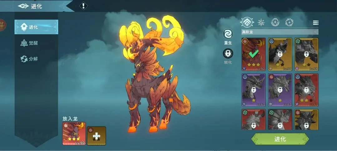 在完成不算漫长的升级流程后,你们或许会看到“已达到最高等级”的提示,这时候就得引入游戏里的另一个机制——进化了。