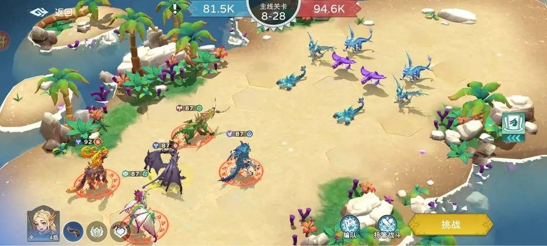 我们的战斗阵容由5条小龙组成,大家要依据自己拥有的小龙以及敌方的布阵情况,合理调整己方阵容,使小龙们彼此协作,从而赢得战斗胜利。