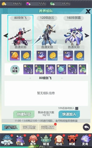 跨界组队在双倍时间,可获得双倍经验、金币奖励。