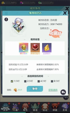 在跨服争夺玩法里,玩家能够挑选不同战力级别的Boss发起挑战,成功击败Boss后,就能占据该Boss对应的坑位;玩家可以根据消耗争夺令数量的不同,自主决定占据坑位资源点的时长,占据时间越久,能获取的奖励就越丰厚,并且资源点产出的奖励会存放在仓库中,不会被其他玩家掠夺,战力越高的Boss,其产出的奖励品质也越好,所有资源点都支持离线挂机获取收益。要是玩家挑战Boss失败,则不会消耗争夺令。