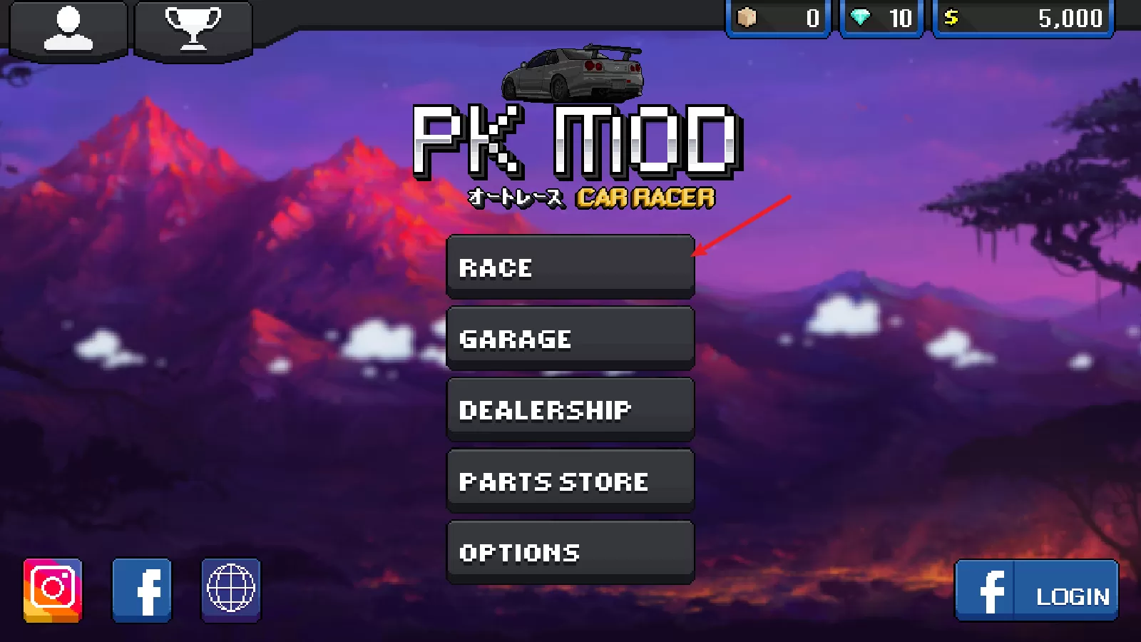 1、当进入游戏之后,点击“RACE”即可开启比赛。