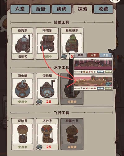 在聘请到合适的大厨之后,我们就能够着手解锁各类配方以及食材了,具体情况可以参考下面的图示: