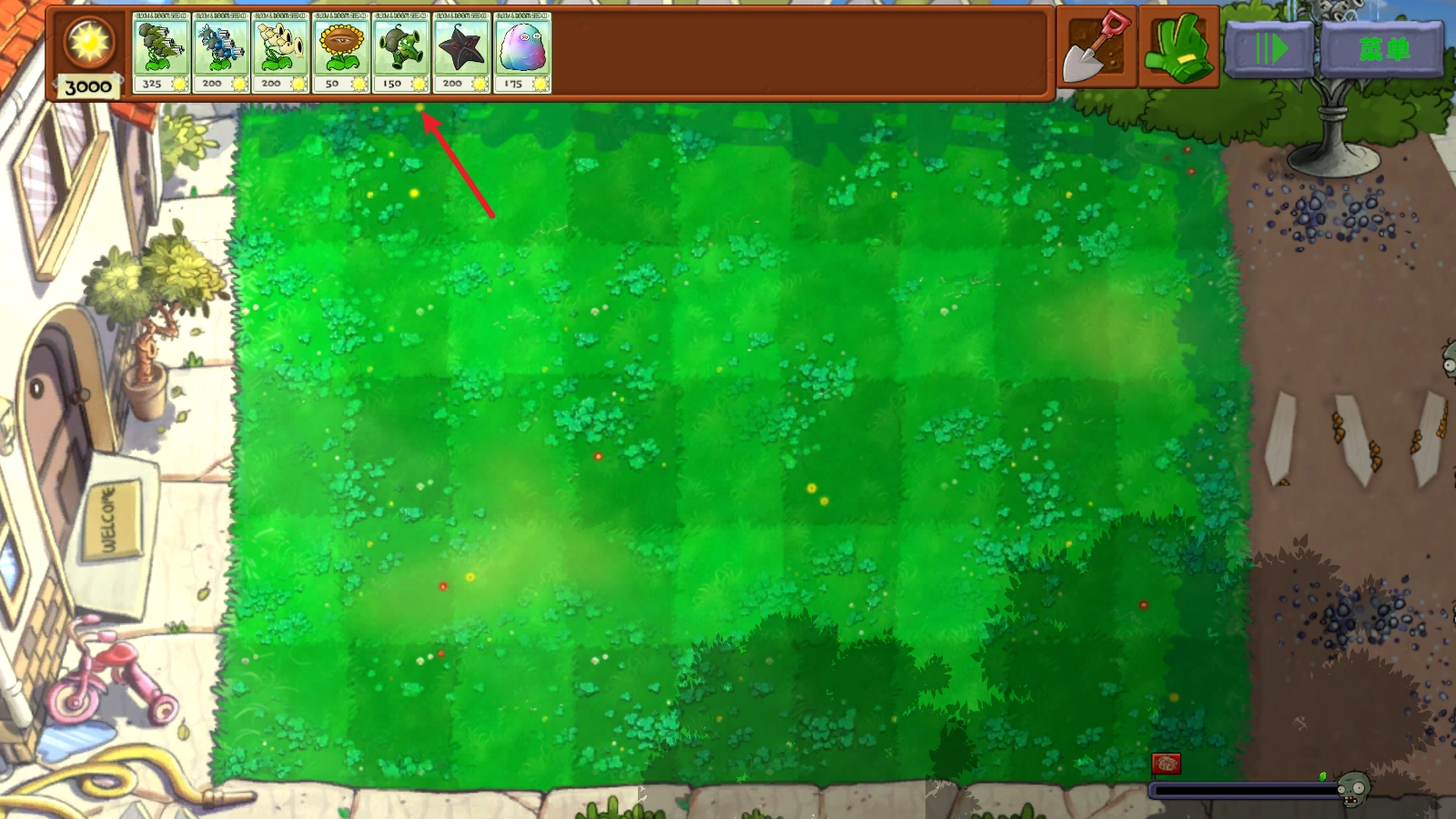 进入游戏后没有原版的选卡环节,直接开始闯关。