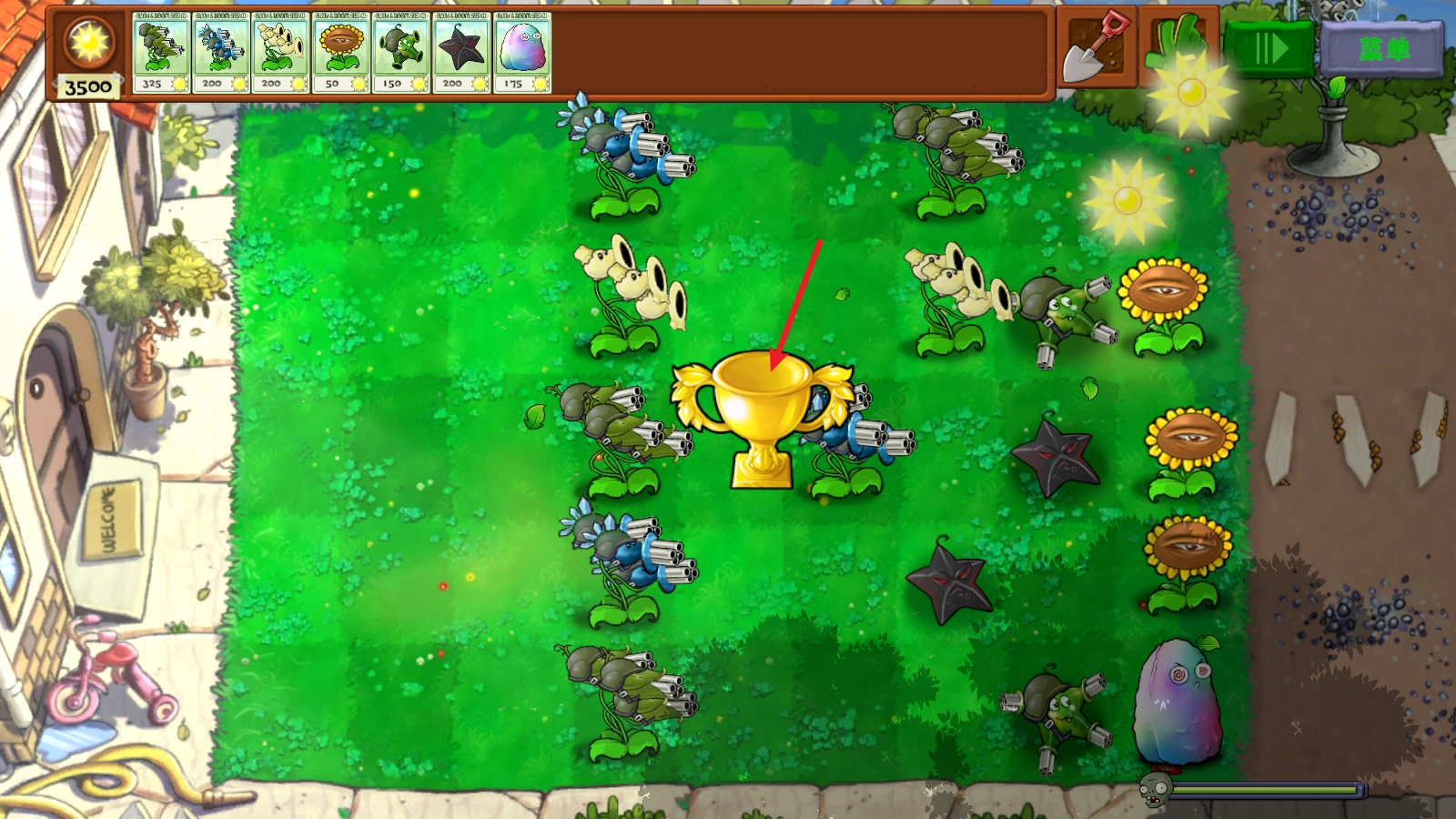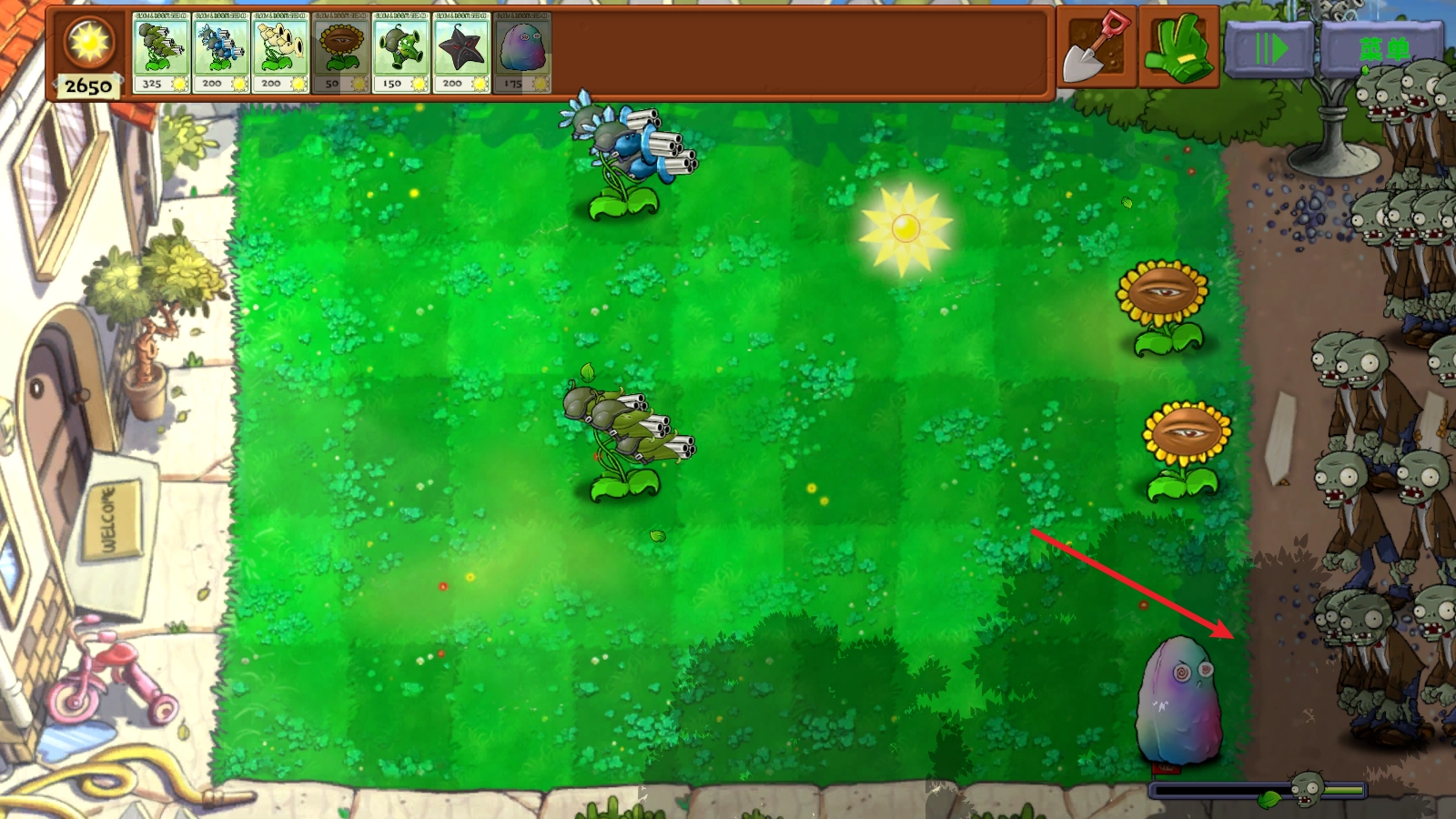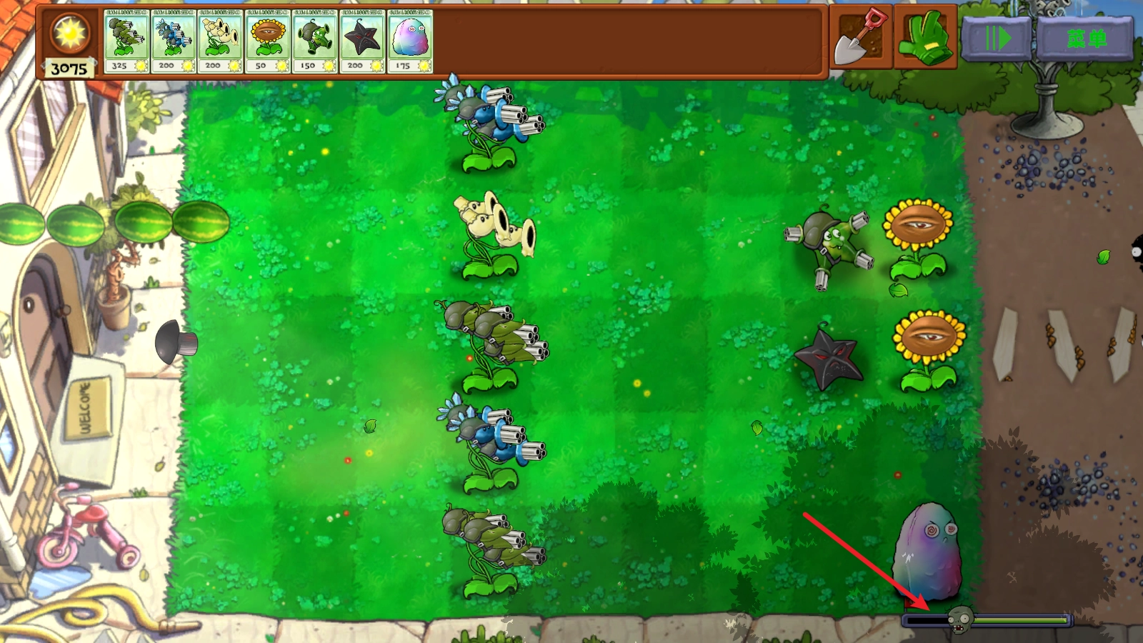 能发射玉米加农炮的机枪射手,以及能发射冰冻西瓜的机枪射手。