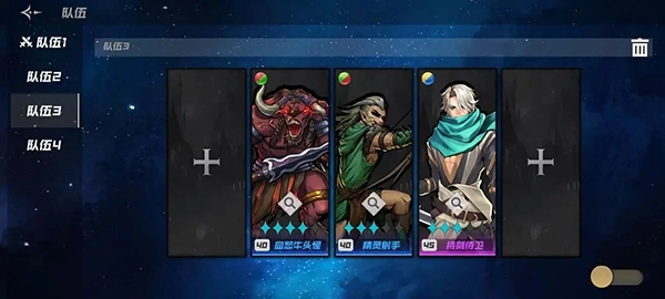 游戏开局赠送的牛头怪、精灵射手和执剑卫士这三个角色,完全可以一路用到通关。经验分配的优先级要给到牛头怪,之后再考虑执剑卫士。剩下的两个上阵位置,就根据你抽到的卡牌来决定,它们只是过渡用的,不需要进行觉醒操作,经验分配到20级就足够了。