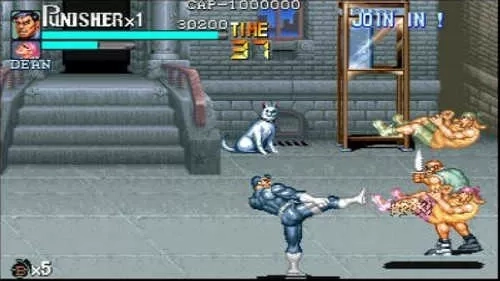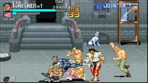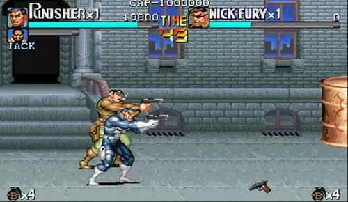 《惩罚者》是一款以美国漫威经典角色“惩罚者(The Punisher)”为蓝本改编的横版清版动作游戏,由街机游戏界巨头CAPCOM在1993年发行。当年,《惩罚者》与《恐龙快打》齐名,在全球范围内引发了一股街机热潮,直至今日,它依旧被众多玩家视作清版动作类游戏的殿堂级经典之作。作为一款融入美漫文化的动作闯关游戏,《惩罚者》不仅有着激烈的打斗场面、硬朗的画风,还蕴含着深沉的剧情内核。玩家将化身一位为家人报仇雪恨、立志铲除罪恶的孤胆英雄,开启一段满是热血与正义的打击犯罪征程。