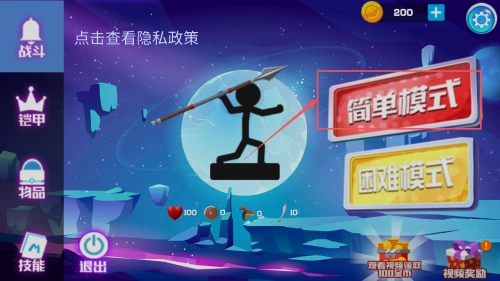 游戏难度的选择方法:进入战斗模式界面后,挑选“简单模式”或者“困难模式”即可开启游戏。