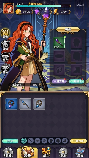 玩家可在局外穿戴或者升级装备,可以提供大量属性