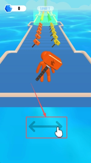 操控角色向前行进:让角色保持持续前进的状态,当遇到障碍或陷阱时,要及时挥舞锤子将它们清除掉,以此保证前进的道路没有阻碍。