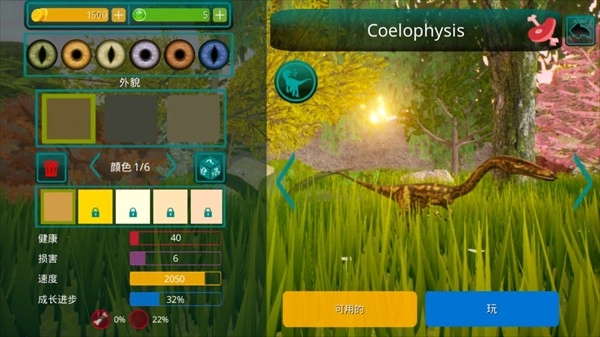 自定义的装扮系统,打造专属的恐龙形象,左侧可编辑各类外貌与颜色。