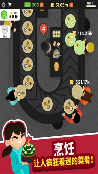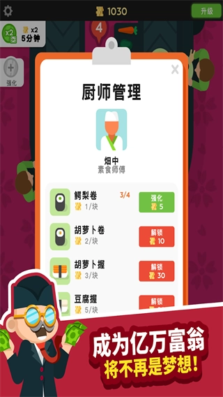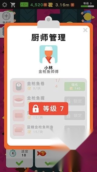随着寿司店不断地升级,你还可以解锁更多厨师。