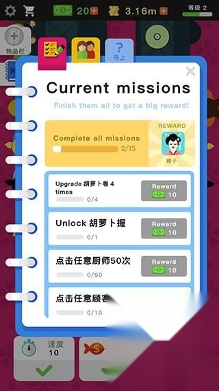点击左侧的小本子图标,就能打开任务列表;完成任务后,还可以在这里领取相应的奖励。
