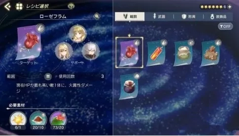 掌握已解锁的配方后,需选择适合的角色与素材,结合角色各自的“天赋颜色”和独特属性,提高道具品质。