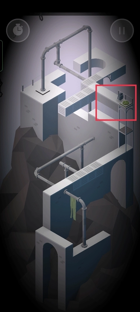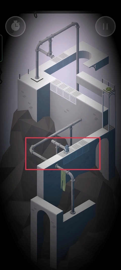 操作看似简单,实则是难点所在,尤其是机关的转动最让人摸不着头脑——稍微调整方向,就能让机器人从一个平面切换到另一个平面。这关真没法用言语说清通关方法,毕竟涉及三维空间,只能建议多尝试,经验积累够了自然就通了。拿上面这张图举例,这是我卡了很久的关卡,必须让中间三根柱子立起来才能从下方通过,为此得转好几个弯,重复很多次相同操作。另外要是卡太久,不妨让别人试试,你的思维可能已经固化,需要新的思路刺激。