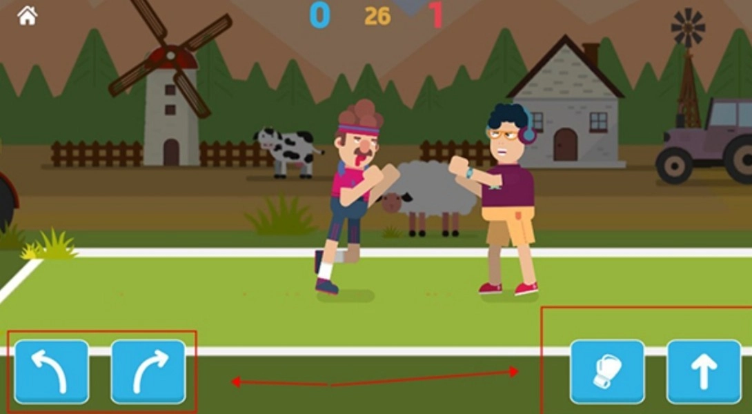 进入关卡后,玩家可借助左侧按钮操控角色左右晃动,右侧按钮则用于控制出拳与跳跃。