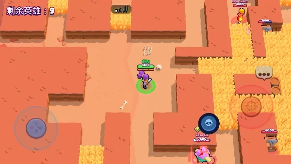 最后一个英雄位,我们选定了布洛克。之所以选择他,正是看重他手长且输出能力强大这一点。他的大招不仅能破坏墙体、草丛,还能摧毁建筑,从而有效为队友减轻压力。