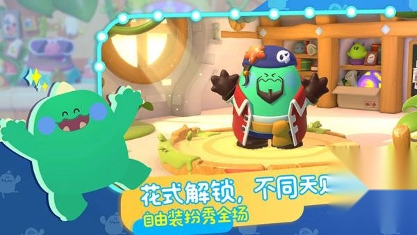 初始角色设定为小绿,其专属技能是跳跃后迅速下坠并发动重击,技能释放后会进入一段短暂的眩晕状态。该角色在淘汰赛中表现较为出色,但在跑酷类关卡中可能存在一定的劣势。