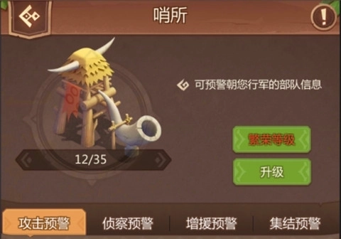 不想被突袭打得毫无准备?那就赶紧给哨所升级吧!一旦你的领地遭遇攻击、侦查、运输或增援行动,哨所都会第一时间发出情报告知你。而且哨所等级越高,能进行的探索次数也就越多哦。
