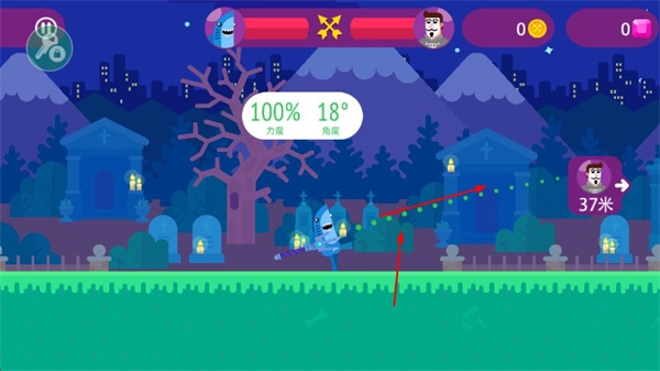 在游戏场景里,调节弹射的力度与角度,对准目标后进行发射,以此攻击敌方角色。