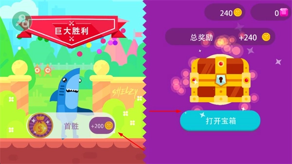 成功取胜后,会得到诸如“巨大胜利”之类的评价,还能获取金币等奖励,此时可以选择开启宝箱,从而获得更多资源。