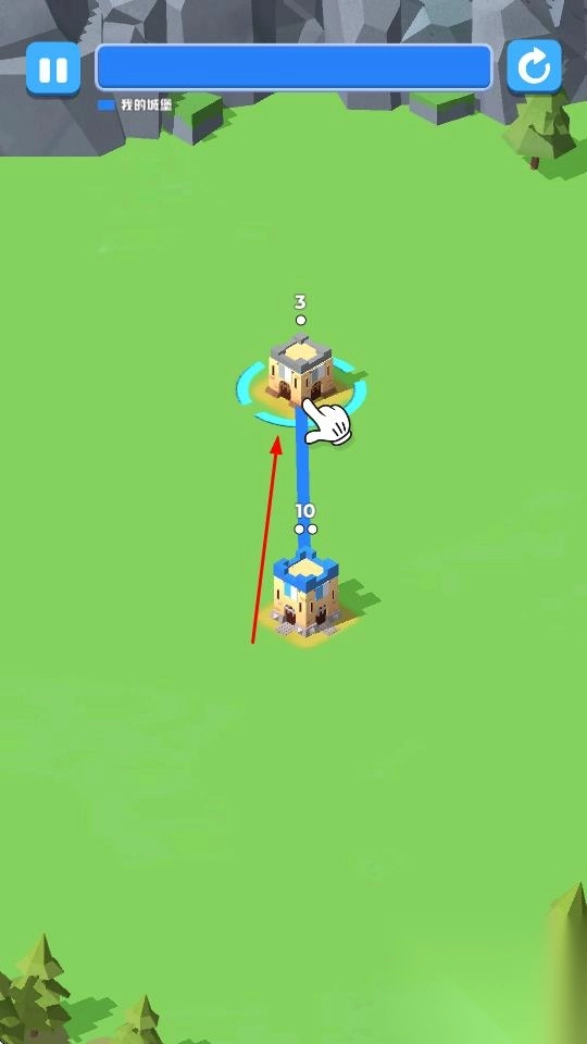 点击己方带有数字兵力标识的城堡,拖动并连接到目标城堡,以此传输兵力,从而增强据点的战力。