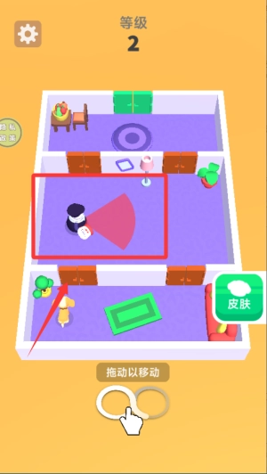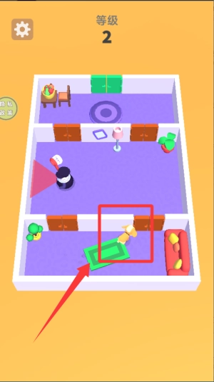 开始闯关前先观察房间布局,了解警卫的视线范围和红色警戒线位置,避免触碰才能安全通过。