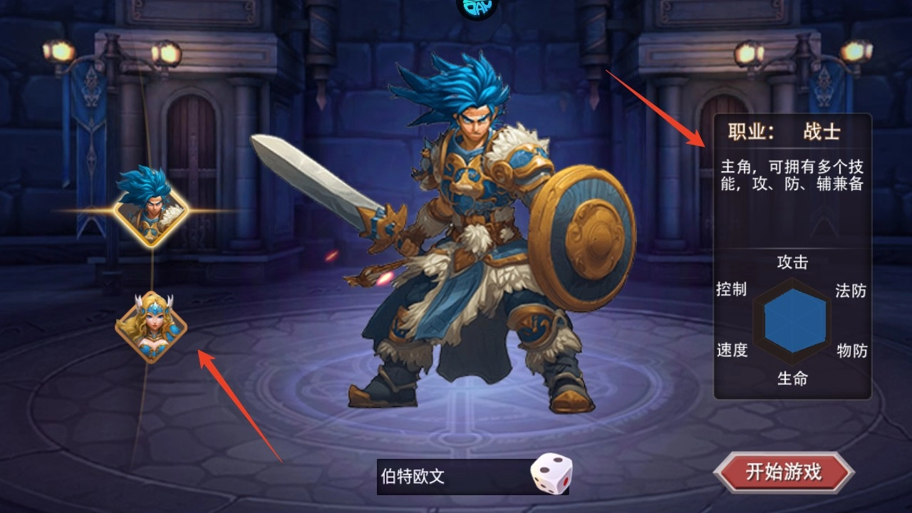 选好职业后点击骰子能随机生成名字,挑个看着顺眼的就行——毕竟是卡牌游戏,主角职业的影响不大。