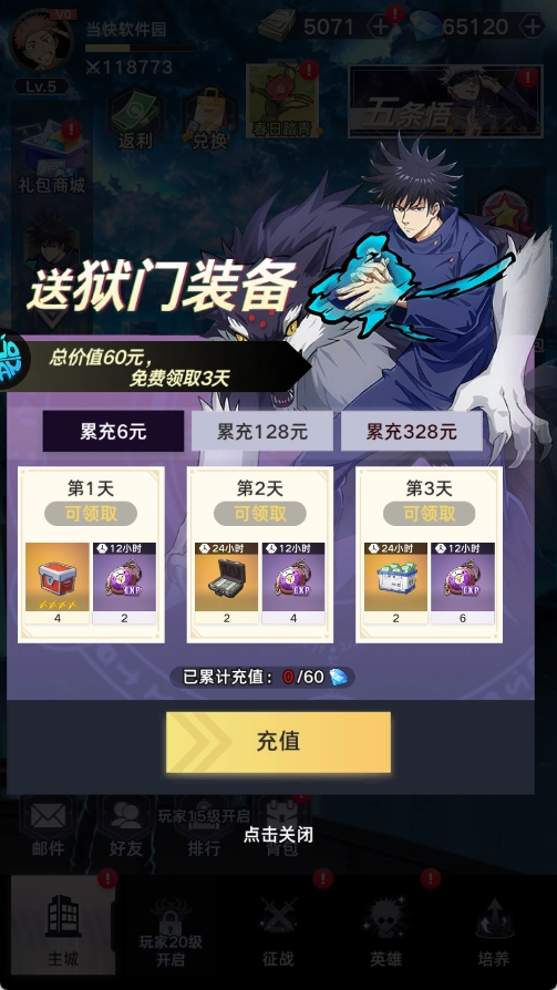首次充值就能领取超人气SP英雄夏油杰,还有直升60级的宝箱!助力你开服冲榜,抢占先机