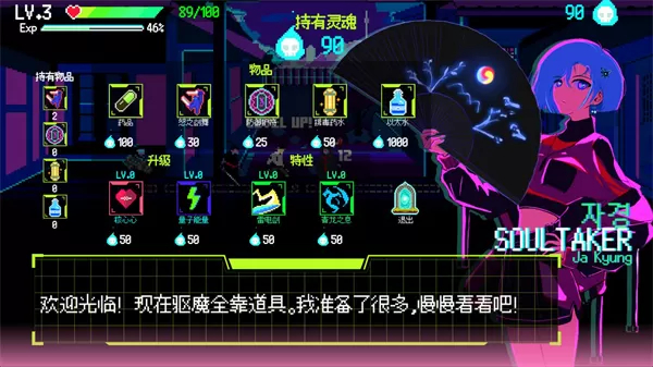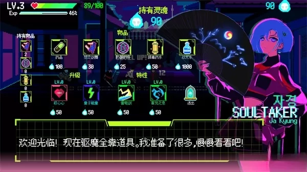 8、每击败两波敌人可以进入商店,在商店内可以消耗灵魂来购买道具和各种升级。