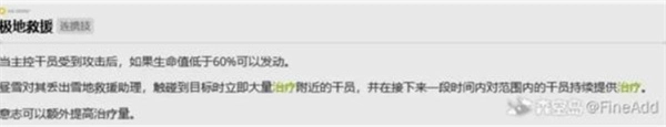 昼雪:连携技在主控干员血量低于60%时可自动发动,冷却25秒,通过E键释放进行回血