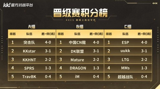 突击队展现出了统治级的实力,以全胜战绩傲视群雄;KKstar战队稳扎稳打,以出色的稳定性锁定晋级席位;KKHNT战队则在关键战中证明了自己的实力,成功突围。