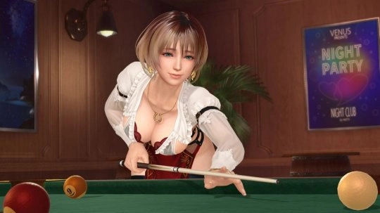 获得服装后,将会可获得大道具“台球桌”,并且也包含可在拍照地点“泳池边酒吧”中使用的“SPOT限定大道具”。玩家可与梅格进行“打台球”或让她跪立在球桌上。