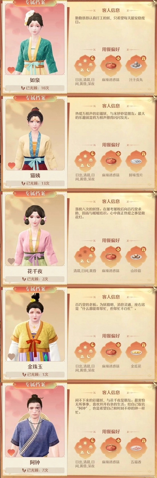 3、有部分NPC一直刷不出来,我是先把能做的任务都做完才开始玩火锅坊,不排除要先在任务中认识才会来吃饭;或者把锅底换成你要刷好感度的那个人的喜好(玄音爱吃酸酸甜甜锅和翠藻结,翠藻结目前解锁不了,只换成酸酸甜甜锅也来了);